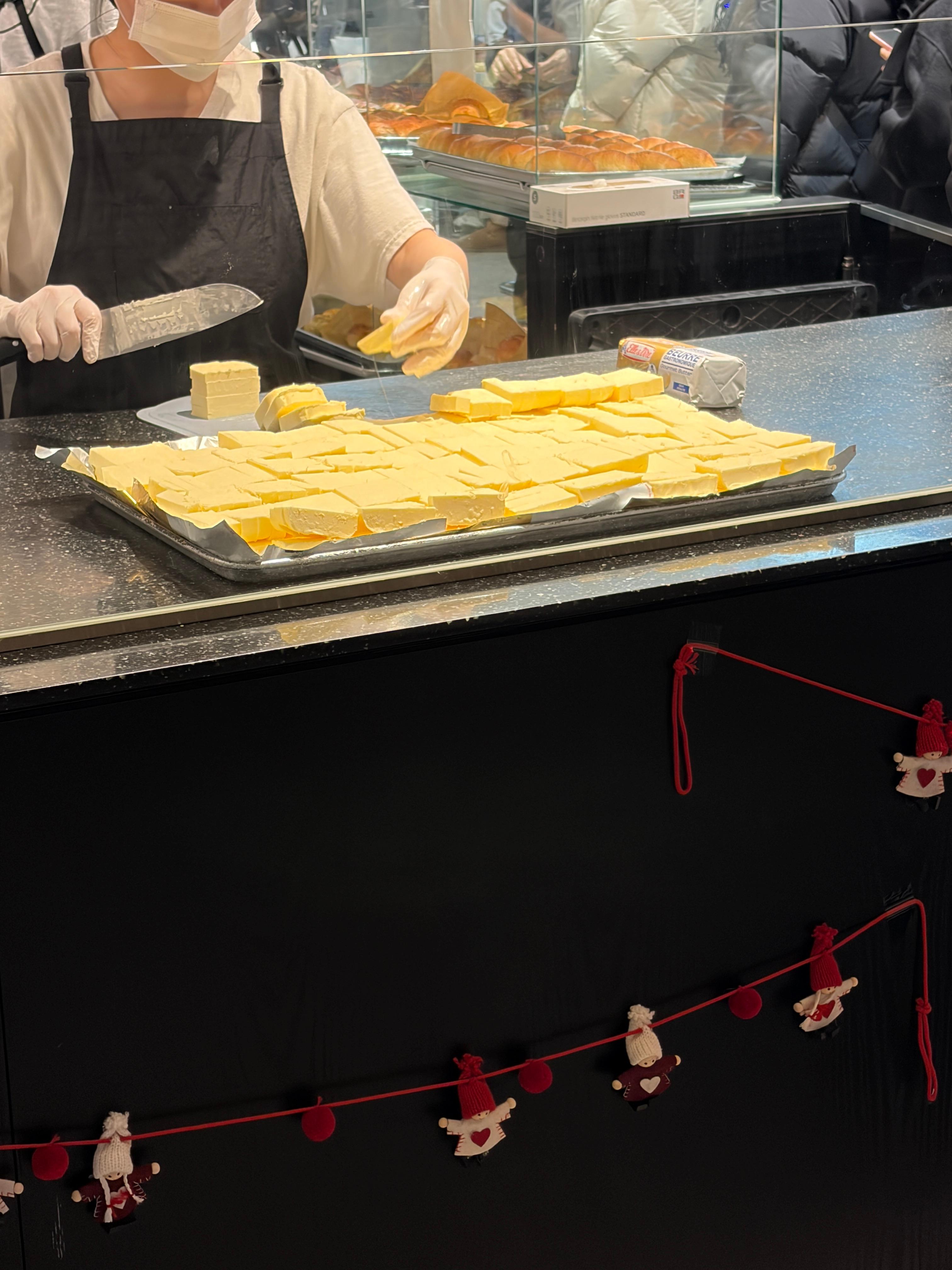 앞에서는 버터를 일정한 크기로 자르고 계셨습니다.